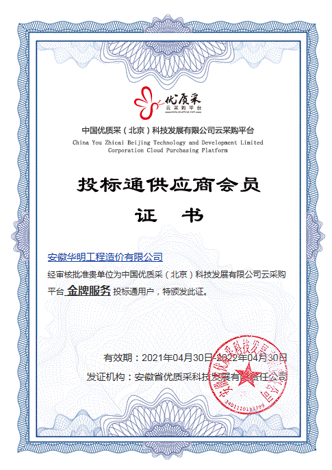 优质采平台---投标通供应商金牌供应商会员证书