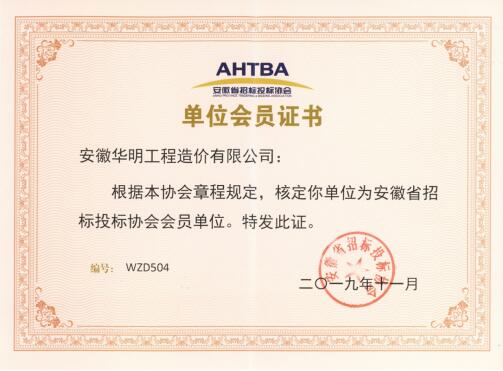 安徽省建筑工程招标投标协会---会员证书