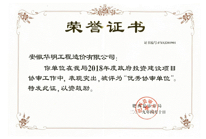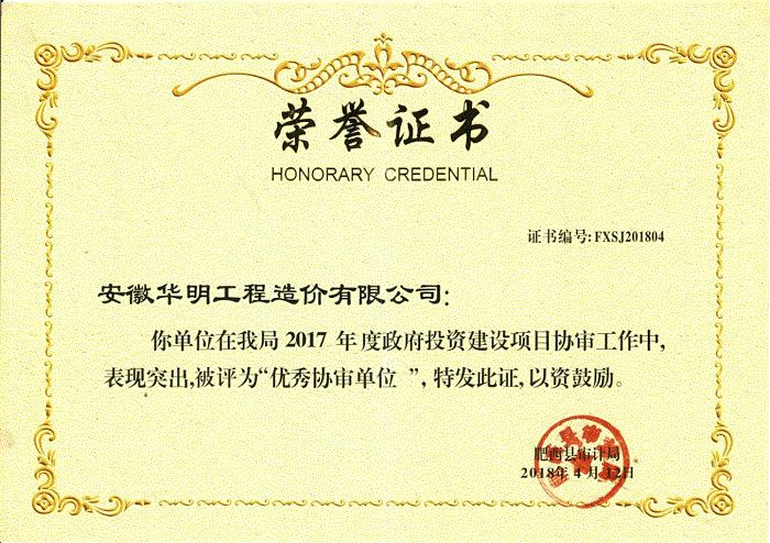 2014-2015年度被肥西县审计局评为“优秀协审单位”
