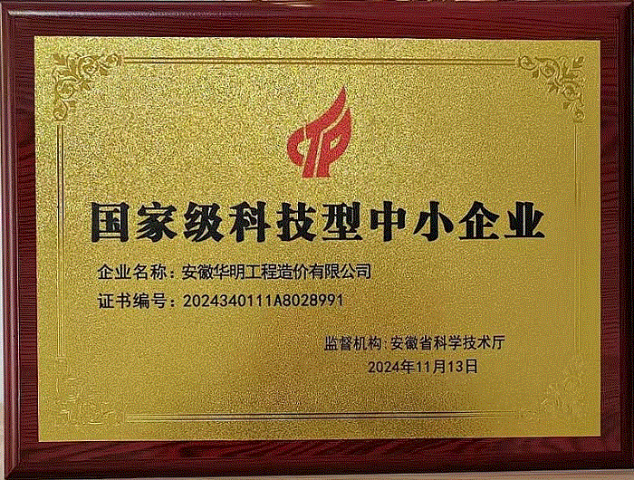 国家级科技型中小企业证书